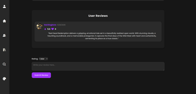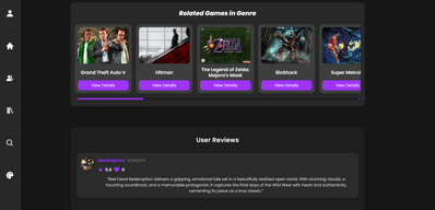 Fully functional review form, real-time review updates, and dynamic game status buttons (Backlog, Favorite, Completed, etc.)